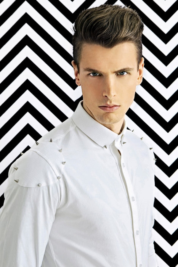 Look "sharp" with ADAMIST Studded collection. Skylar features circular shoulder pads adorned with silver studs. Undoubtedly a daring piece, worn by the fashionably brave, worthy of every attention.